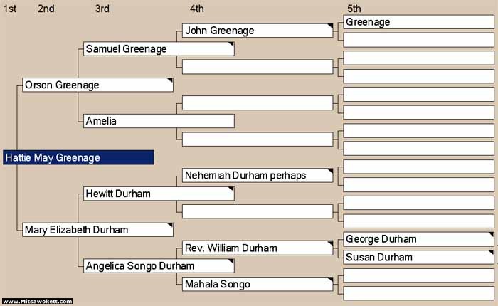 daughter of Hewitt/Hugh Durham and Angelica "Annie" Songo/Durham