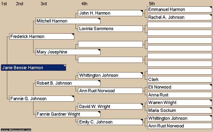 Ancestry of daughter Janie Bessie Harmon Norwood