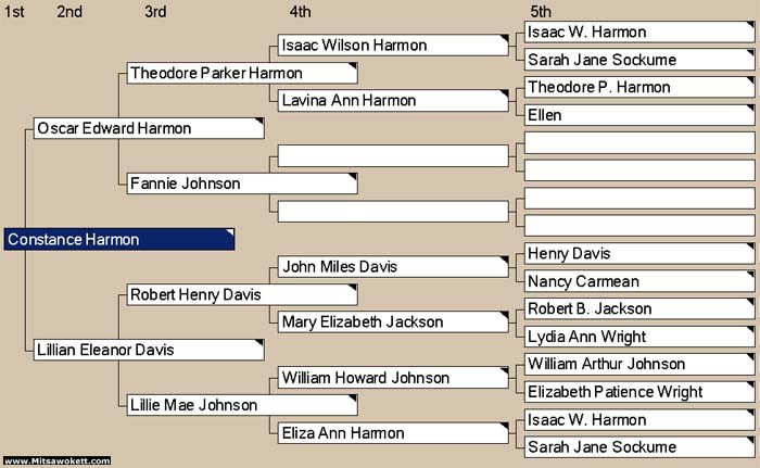 of Constance Harmon, daughter of Oscar & Lillian (Davis) Harmon