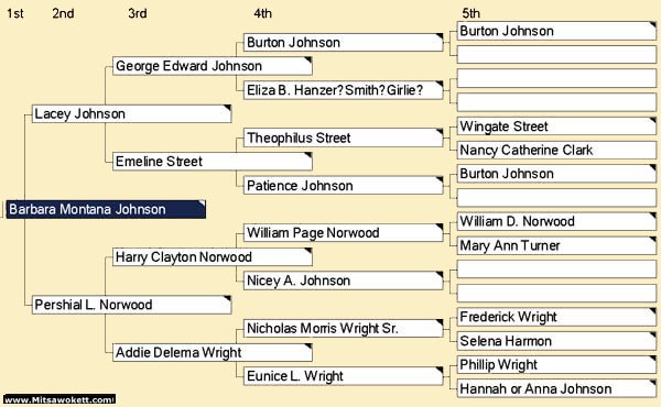 Ancestry of daughter Barbara Montana Johnson Morris